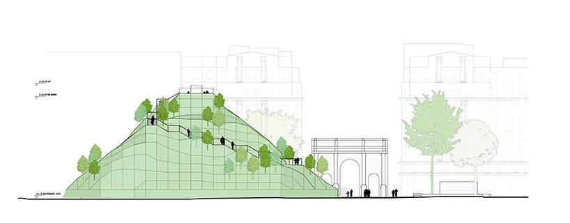 به گزارش گالري آنلاين، اين پروژه اواخر سال 2021 افتتاح خواهد شد. نام طرح "marble arch hill" که مانند "کوهي  ميان تهي" بر روي داربست طراحي شده است، باز تعريفي از ارتباط بين خيابان آکسفورد و هايد پارک لندن خواهد بود و در عين حال چشم اندازي بي نظير از مناظر اطراف در برابر ديد بازديدکنندگان قرار مي دهد. اقدامات ناشي از بيماري همه گير کوويد 19 ضربه شديدي به خيابان آکسفورد بعنوان يکي از شلوغ ترين خيابان هاي تجاري اروپا وارد کرده است؛ از اين رو برنامه ريزي هايي جهت تنوع بخشيدن به فضاي خيابان در دست اجراست، اما از آنجايي که اين تغييرات چندين سال طول مي کشد، مقامات محلي در پي استفاده از چيدماني موقت هستند تا بتوانند توجه و علاقه به اين منطقه را مجدداً جلب کنند.
