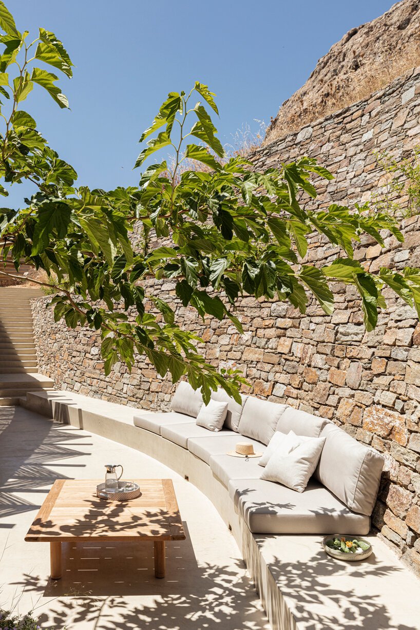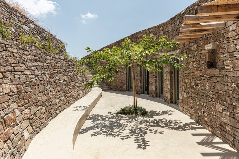 خانه تابستاني شرکت معماري sinas برخلاف حجم هاي سفيد روي هم سوار شده معمولاً به معماري سبک Cycladic مي پردازد که مسير پيچ و خم داري را در زمين هاي جزيره Serifos يونان به آرامي طي مي کند.