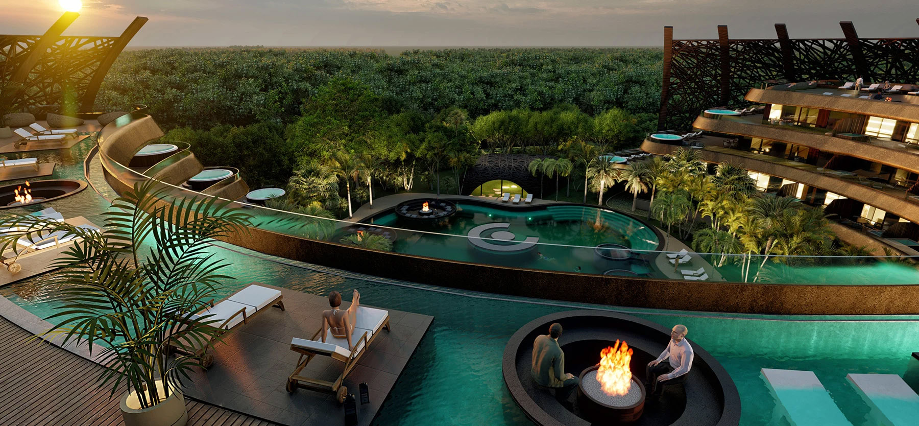 هدف استوديو معماري DNA از اين پروژه دستيابي به تعادل ميان ذهن، جسم و روح با گريز از زندگي روزمره به معناي واقعي است که استراحت و قطع ارتباط تا بيشترين حد ممکن را فراهم مي سازد. براي همين منظور مرکز تن آسايي و سلامت (اسپا)، سونا و استخرهاي شناي عمومي آن به دقت توسعه يافته اند تا بخش مهمي از اين پروژه را تشکيل دهند. ايده ساخت "cenotes"، حوضچه هاي آب شيرين طبيعي به ويژه در ارتباط با منطقه، که ماياها از آنها در مراسم مذهبي استفاده مي کردند اين فرصت را براي مهمانان فراهم مي کند تا با مراسم ماياها آشنا شده و آن را تجربه کنند.