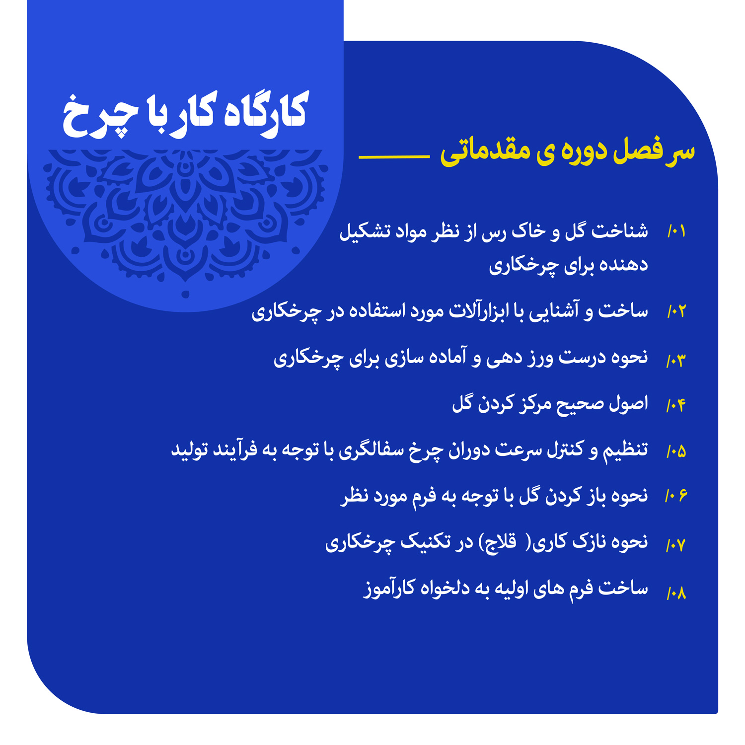موسسه فرهنگي هنري صبا در ادامه کارگاههاي تخصصي هنرهاي سنتي، در ترم تابستان ۱۴۰۰ کارگاه «آموزش مقدماتي کار با چرخ سفالگري» را با مدرس مصطفي ميرزايي براي هنرجويان برگزار مي کند.