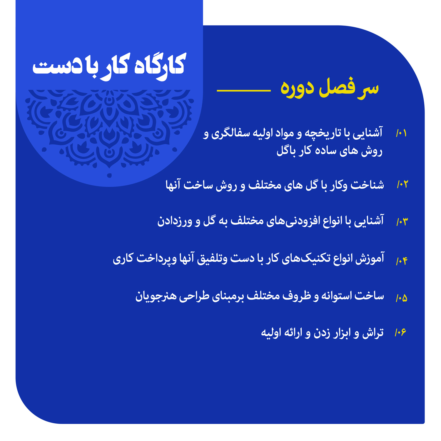 3) آموزش انواع تکنيک هاي کار با دست و تلفيق آنها و پرداخت کاري