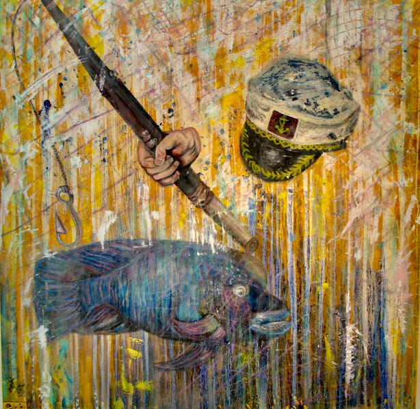 هنرمند ضمن نماياندن اسارت اين صيد بي دفاع، با عناصر ميکس مديا، رنگ و نورهايي روان را در هنر تصويرگري خود، در پيشگاه مخاطبان نو انديش و زيبا ذهنش قرار مي دهد، با اين اميد تا مجالي دگر بر انديشه تغيير چنين نابرابري انساني، در جامعه خويش باشد.