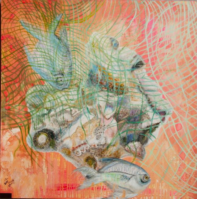 به گزارش گالري آنلاين، الهام جلالي، هنرمند معاصر، در پي کاوشهاي خود در ورطه زيبايي شناختي و تجارب ناب دنياي لايتناهي هنر،حکايتي از رنج ديدگي زن ايراني در غالب ماهي را در پيش چشم مي کشد که اسير صيادي خودکامه و ستمگر گرديده و عليرغم تلاشهاي بي وقفه رهايي و فرياد آزادي خواهي اش،محکوم به پذيرفتن سرنوشت شده و در نهايت با درگذشتن از حقوق اوليه انساني، وجود پر تلالو خود را وقف عزيزانش کرده و در نهايت در نور وجودي اش، ذوب خواهد شد.