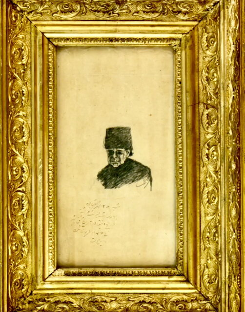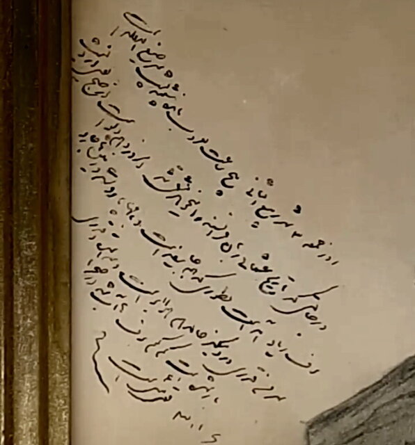 مشق سياهقلم ناصرالدين شاه از استاد خود، صنيع الملک