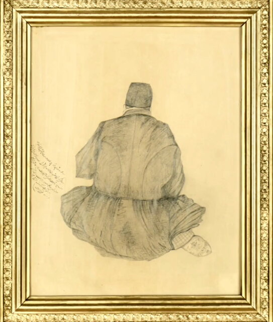 پرتره يکي از خادمان دربار که در حاشيه آن نوشته شده در ۵ دقيقه طراحي شده است