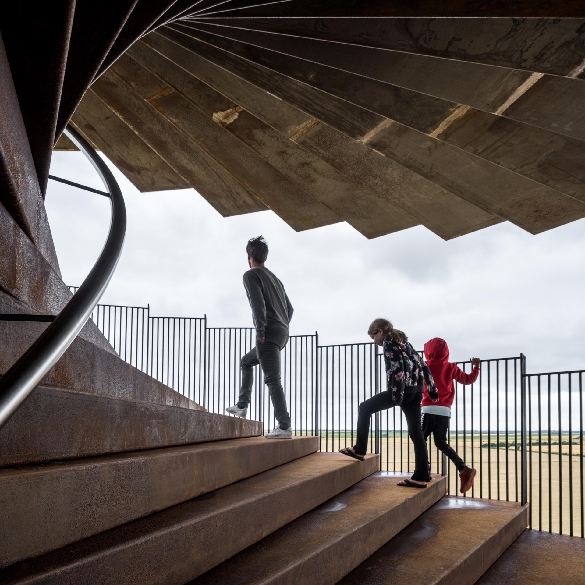 در بالاي پله ها، برج به سکويي باز مي شود که منظره 360 درجه اي از اکوسيستم جزر و مدي پارک ملي درياي وادن را ارائه مي دهد.