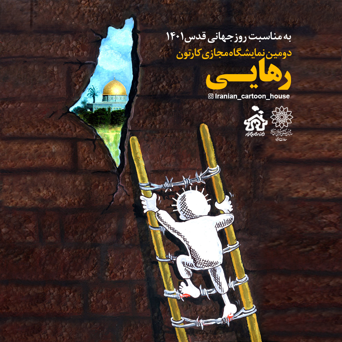 دومين نمايشگاه مجازي کارتون"رهايي" به مناسبت روز جهاني قدس1401،با هدف حمايت از قدس شريف و مقاومت فلسطين مظلوم ومحکوميت جنايات ضد بشري رژيم صهيونيستي، در قالب فتوکليپ انتشار مي يابد. ايننمايشگاه مجموعه اي از آثار کارتون و کاريکاتور هنرمندان ايران و جهان است که دررابطه با اهداف مذکور، توسط خانه کاريکاتور گردآوري و در فضاي مجازي انتشار مييابد.