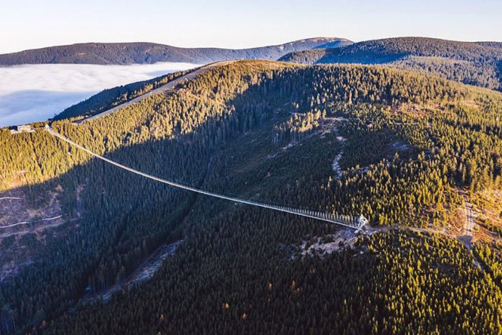 به گزارش گالري آنلاين به نقل از هنرآنلاين، کشور چک با افتتاح يک پل معلق عابر پياده در بين دو کوه سلامنکا و کلام جاذبه جديدي را براي گردشگران راهاندازي کرده است. اين پل که نام اسکاي ۷۲۱ را يدک ميکشد، ۷۲۱ متر امتداد داشته که اين عدد در نام پل به عنوان نماد گنجانده شده است.