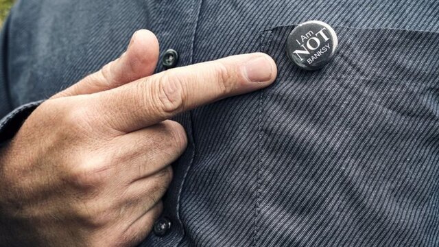 اما «گانون» ميگويد مردم مدام از او ميخواستند تا ثابت کند او «بنکسي» است يا نه و اين کار توانايي او براي فعاليت در شغلش به عنوان يک عضو شورا از او گرفته بود. کار حتي به جايي رسيد که او ناچار شد علامتي را بر لباسش نصب کند که روي آن نوشته شده است «من بنکسي نيستم».