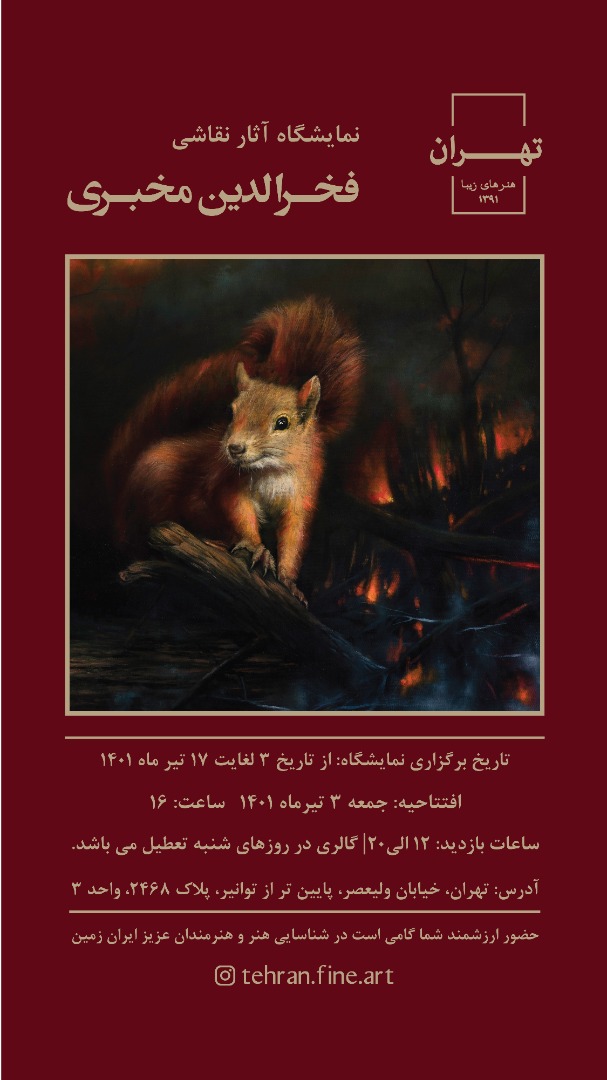 نمايشگاهي از آثار نقاشى فخرالدين مخبرى همزمان با افتتاح گالرى هنرهاى زيباى تهران از روز جمعه 3 تيرماه برگزار مي شود. "مي بايست چشمي دقيق و روحي پذيرنده و شفاف داشته باشي تا هر چه دقيقتر بتوان مفاهيم را به مخاطب منتقل کرد ." اين را فخرالدين مخبرى در گفتگو با خبرنگار گالري آنلاين بيان کرد. در ادامه خواننده گفتگو با اين هنرمند باشيد.