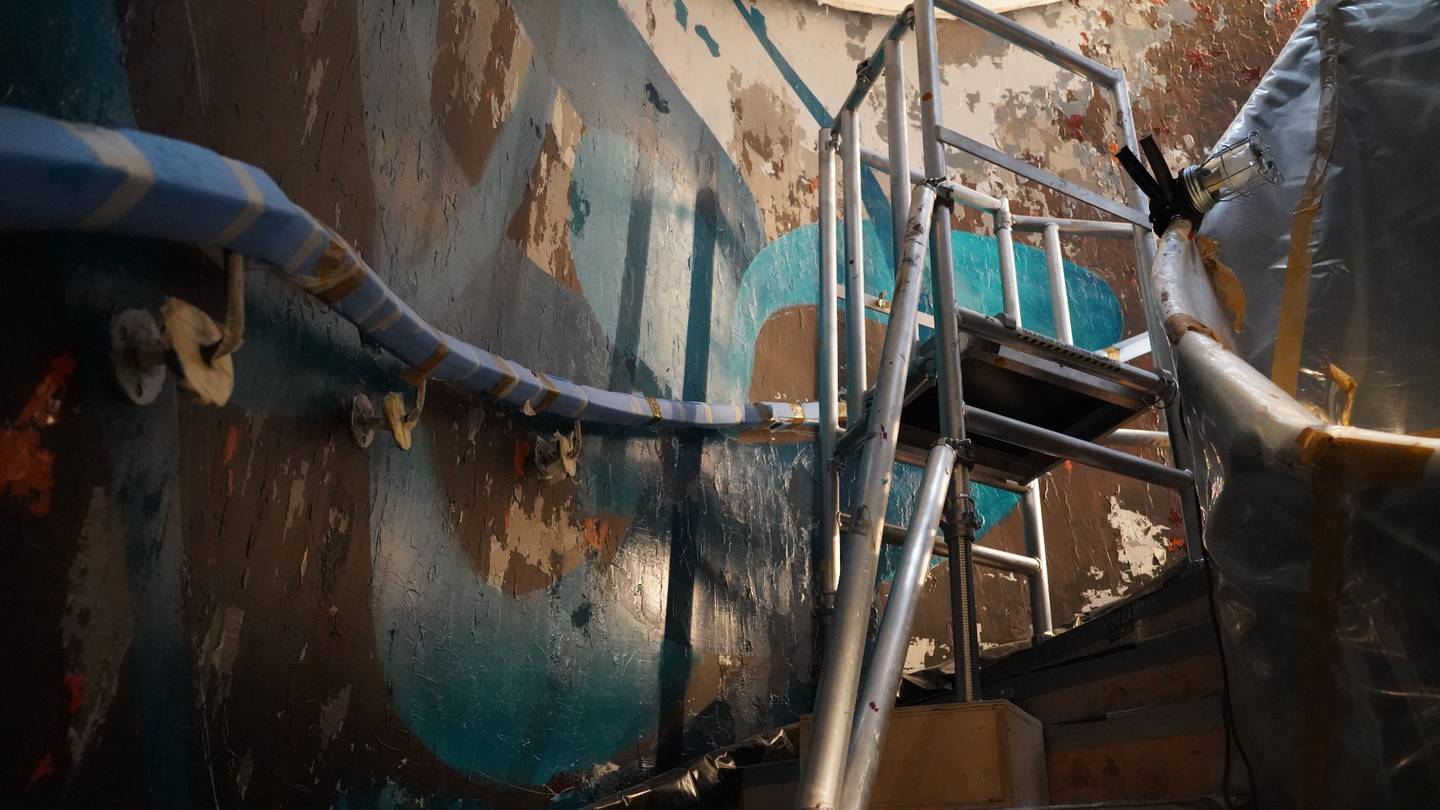 در يکي از بخش‌هاي موزه هنر ليتون هاوس يک نقاشي ديواري به ارتفاع ۱۱ متر کشيده شده که ديوار‌هاي منحني يک پلکان مارپيچ جديد را در سه طبقه پوشانده است. نقاشي اين بخش برعهده يک هنرمند ايراني بوده و به رنگ فيروزه‌اي با الهام از اشعار مولانا کشيده شده است.