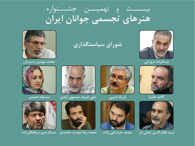 به گزارش گالري آنلاين، ايسنا به نقل از واحد ارتباطات و رسانه مرکز هنرهاي تجسمي وزارت فرهنگ و ارشاد اسلامي نوشت، عبدالرضا سهرابي (مدير مرکز هنرهاي تجسمي و رئيس شوراي سياستگذاري بيست و نهمين جشنواره هنرهاي تجسمي جوانان) با صدور احکامي کاظم چليپا، محمدمهدي رحيميان، علي اشرف صندوق آبادي، فرزاد اديبي، سيد نظامالدين اماميفر، محمدرضا دوستمحمدي، صديقه احمدي، عبدالرحيم سياهکارزاده و محمد خراسانيزاده را به عنوان اعضاي شوراي سياستگذاري اين جشنواره منصوب کرد.