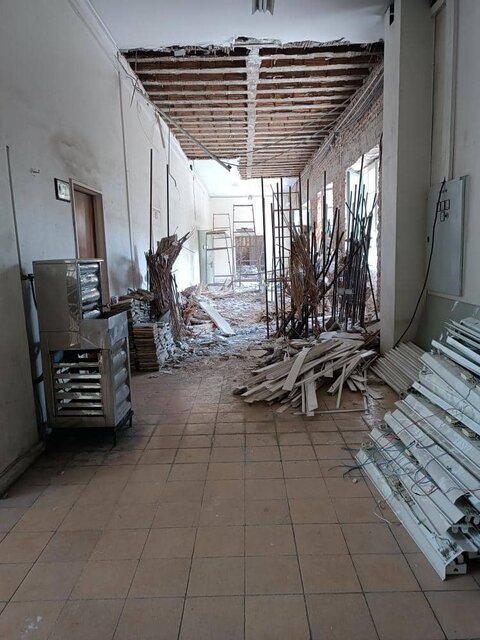 گچ ديوار را شکافتهاند، به آجرهاي قديمي رسيدهاند. در سقف، لايه چوبي آشکار شده است، در گوشهاي از ساختمان الوارهاي چوبي، لامپها و بقايا و ديگر ضايعات اين خرابي رها شده است. در سمت ديگري ميلگردها علم شدهاند؛ اين اوضاعِ بخشي از ساختمان تاريخي دانشکده ادبيات و علوم انساني دانشگاه تهران است.