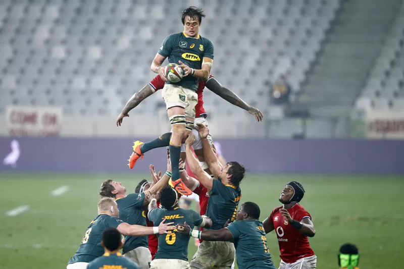 فرانکو موزترت از تيم آفريقاي جنوبي، توپ را بالاتر از همه در مسابقه مقابل تيم منتخب بريتانيا و ايرلند در ورزشگاه کيپ تاون تصاحب ميکند. آفريقاي جنوبي مسابقه سوم و نهايي را با نتيجه ۱۶-۱۹ برد.