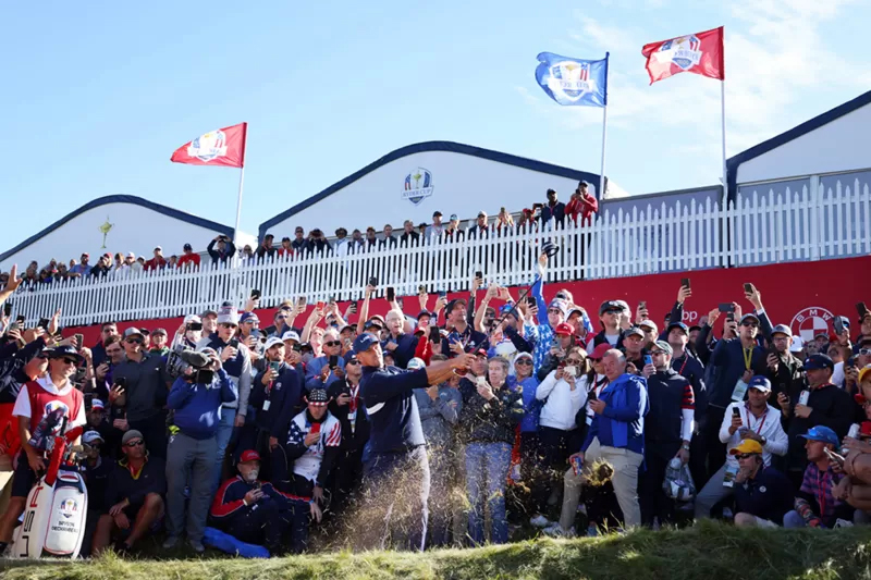 برايسون ديشامبو آمريکايي در حال بازي در چهل و سومين دوره رايدر کاپ. تيم آمريکا توانست با پيروزي ۹-۱۹ مقابل تيم اروپا قهرماني رايدر کاپ را در ويسکانسين پس بگيرد.
