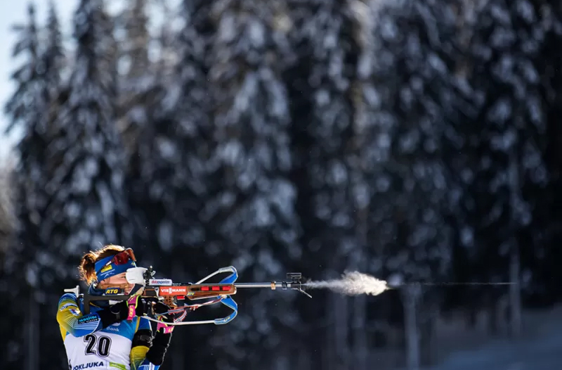 لين پرسان سوئدي ۱۳ فوريه ۲۰۲۱ در حال رقابت در مسابقات قهرماني جهان بياتلون (دوگانه) در پوکليوکا اسلووني.