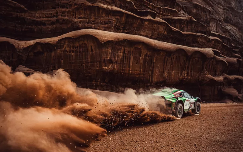 ياسي سيدان در حال رانندگي در رالي داکار ۲۰۲۱ در عربستان سعودي.