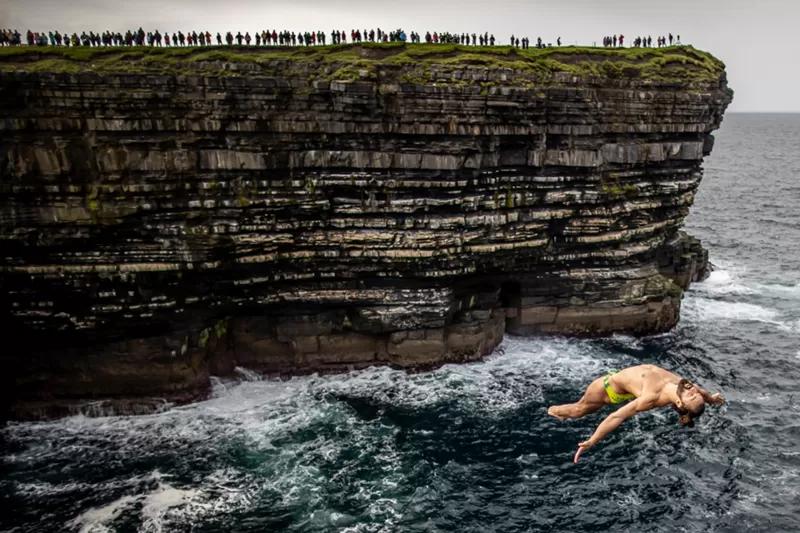 کاتلين پردا از روماني، سپتامبر ۲۰۲۱ در بخش ۲۷ متر مسابقات جهاني رد بول از صخرهاي در دانپتريک ايرلند شيرجه ميزند.