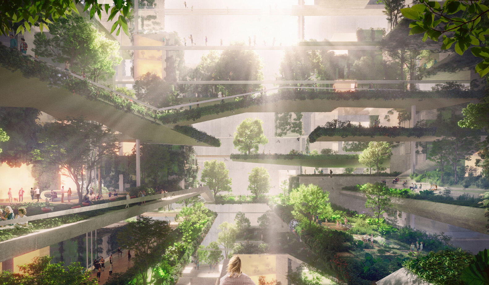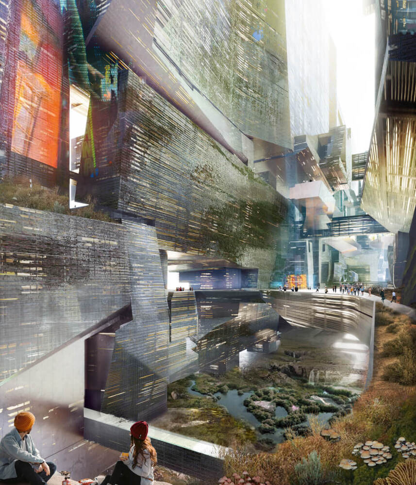 فضاي داخلي به گونه‌اي ساخته مي‌شود که ساختمان‌ها، لايه‌هاي پارک‌هاي عمومي، مناطق عابران پياده، مدارس، خانه‌ها و مکان‌هاي کار را در خود جاي دهد.