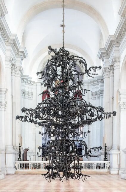 به گزارش گالري آنلاين، ايسنا به نقل از آرتنيوزپيپر نوشت، «کمدي انساني» عنوان مجسمه شيشهاي عظيمالجثهاي به طول ۶ متر و ارتفاع ۹ متر است که در نگاه اول شبيه يک چلچراغ سياه به نظر ميرسد. اين مجسمه گل سرسبد نمايشگاه جديدي است که از ۳۲ مجسمه جديد و قديمي اين هنرمند تشکيل شده است و در يک کليساي قرن شانزدهمي واقع در ونيز برگزار شده است.