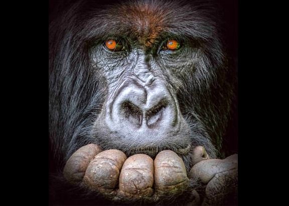 تصويري از يک گوريل کوهستاني متفکر با چشمان نارنجي درخشان برنده جايزه برتر جوايز عکاسي حيات وحش آفريقايي «بنجامين مکپا» در سال ۲۰۲۲ شد. اين عکس که توسط عکاس مقيم ايالات متحده، ميشل کرانز گرفته شده است، به دليل ثبت احساسات ميمون، طي مراسمي در موزه ملي نايروبي در پايتخت کنيا مورد تقدير قرار گرفت.