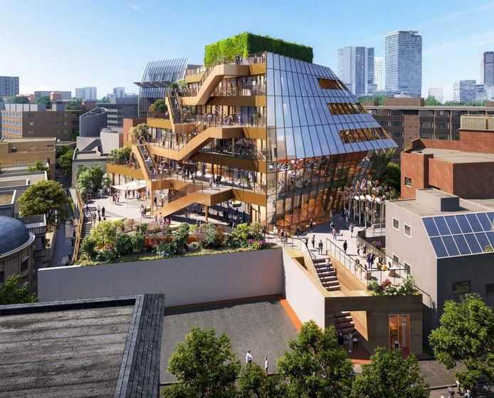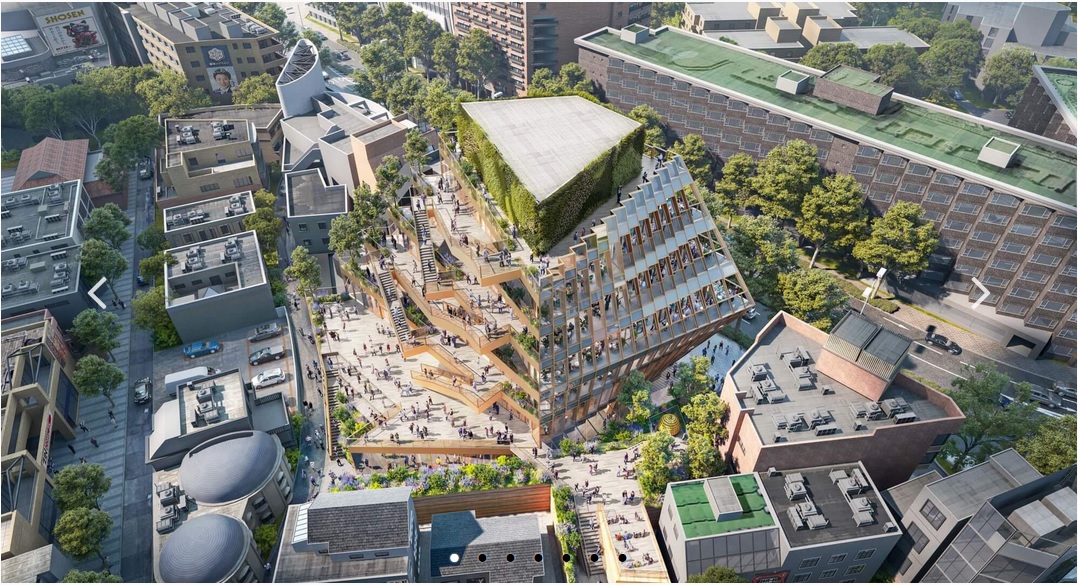 دفتر معماري OMA از طراحي پروژه مرکز خريد هاراجوکو با تراسهاي پلکاني و پشتبام سبز با نمايي شيشهاي در شهر توکيو رونمايي کرده است.