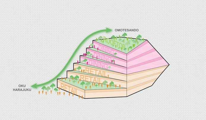 به گزارش گالري آنلاين به نقل از هنرآنلاين، اين ساختمان با مساحت ۸۰۸۲ مترمربعي در ميان دو منطقه محبوب فرهنگي اوموتيساندو و هارجوکو توسط استوديوي نيويورک OMA با همکار شرکت Shohei Shigematsu طراحي شده و داراي فضاهاي خردهفروشي، رستوران و همچنين سقفي با ديوارهاي نشيمن خواهد بود.