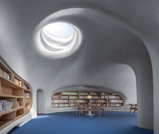 کتابخانه بتني هايکو با بهرهگيري از نوآوريهاي فناورانه و مهارت دستي ساخته شده است.