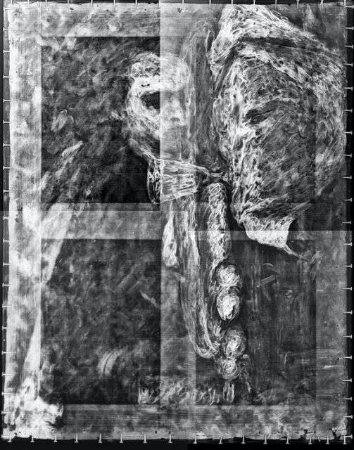 او در ادامه اين نقاشي را با استفاده از اشعه ايکس ري مورد بررسي قرار داد و در نتيجه آن با تصويري از يک پرتره پنهاني در زير لايههاي نقاشي طبيعت بيجان مواجه شد. با توجه به ويژگيهاي اين پرتره ميتوان نتيجه گرفت که اين نقاشي «سزان» در دوران جواني را به تصوير ميکشد.