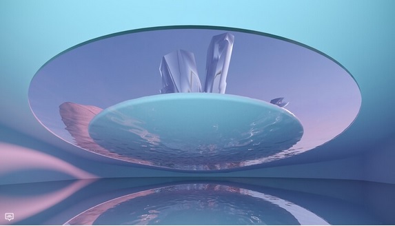 در محوطه فضاي رويداد عمومي، بازاري قرار دارد که کف آن توهم لايه نازکي از آب درخشان را ميدهد و بالاي آن سقفي از يخ نازک مانند يک سفينه شناور آويزان است. با ساخت و صعود بازار براي فضاهاي جديد در متاورس، يخ روي پشتبام شروع به ذوب شدن خواهد کرد و با رشد آن سازگار ميشوند. برخلاف دنياي فيزيکي با رشد توسعه صنعتي، ذوب شدن يخچالها عواقبي سنگين براي زمين و ساکنانش به دنبال خواهد داشت.