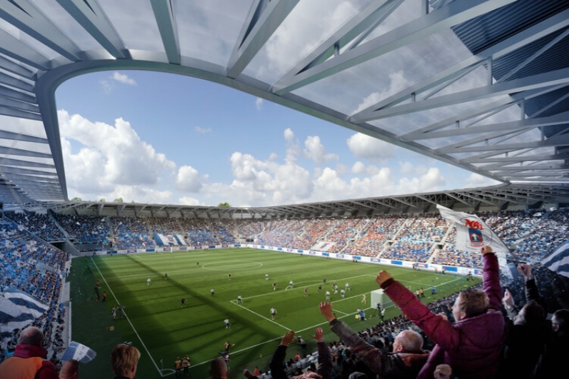 معماران زاها حديد با همکاري معماران منظر Tredje Natur و دفتر مهندسين مشاور Sweco براي طراحي ورزشگاه جديد فوتبال آرهوس در دانمارک انتخاب شدند.