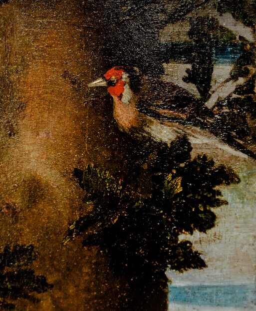 در اين نقاشي همچنين يک سهره به تصوير کشيده شده که رنگ سرخ آن مدتها به عنوان نمادي از خون مسيح بر روي صليب در نظر گرفته شده است.