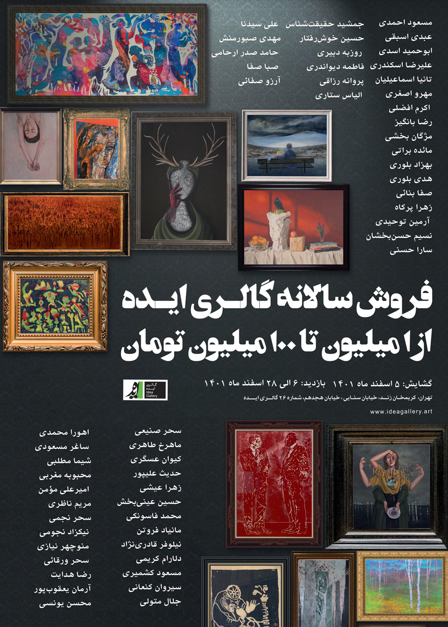 نمايشگاهي تحت عنوان "فروش سالانه گالري ايده" شامل آثاري از 1 ميليون تا 100 ميليون تومان در گالري ايده برپا شده است است.