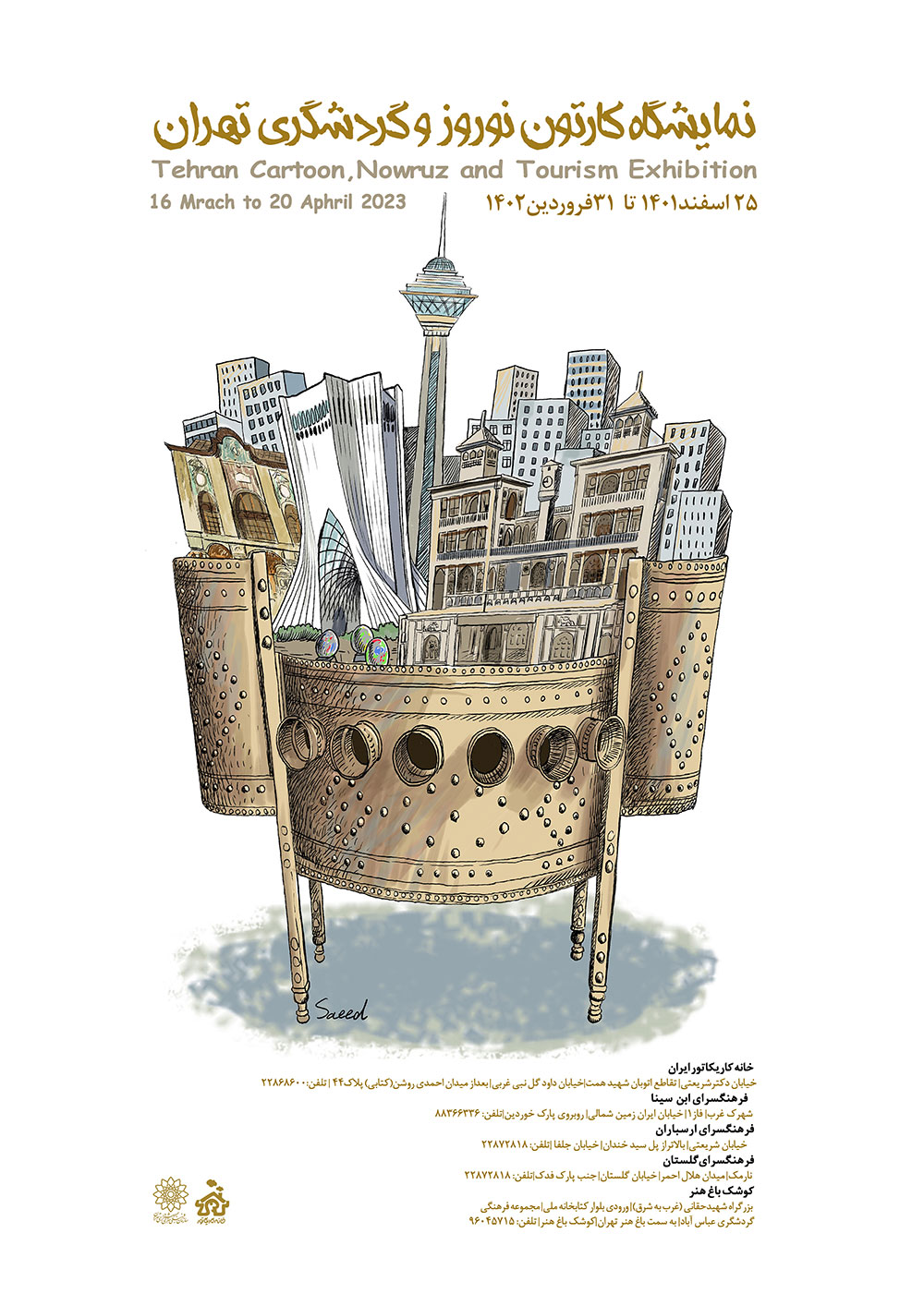 « نمايشگاه کارتون نوروز و گردشگري تهران» از تاريخ 25 اسفند 1401 تا 31 فروردين 1402 علاوه بر خانه کاريکاتور ايران، در فرهنگسراهاي: ابن سينا، ارسباران، گلستان و همچنين کوشک باغ هنر(منطقه گردشگري عباس آباد) برگزار خواهد شد.