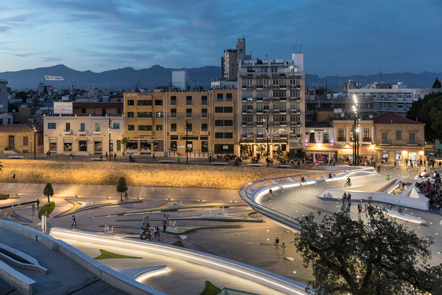 معماران زاها حديد (ZHA) با ايجاد ميدان Eleftheria به عنوان فضاي تجمع اوليه در مرکز نيکوزيا قبرس، ارتباطات جديدي را ايجاد ميکند و پايتخت تقسيم شده را يکي ميکند.