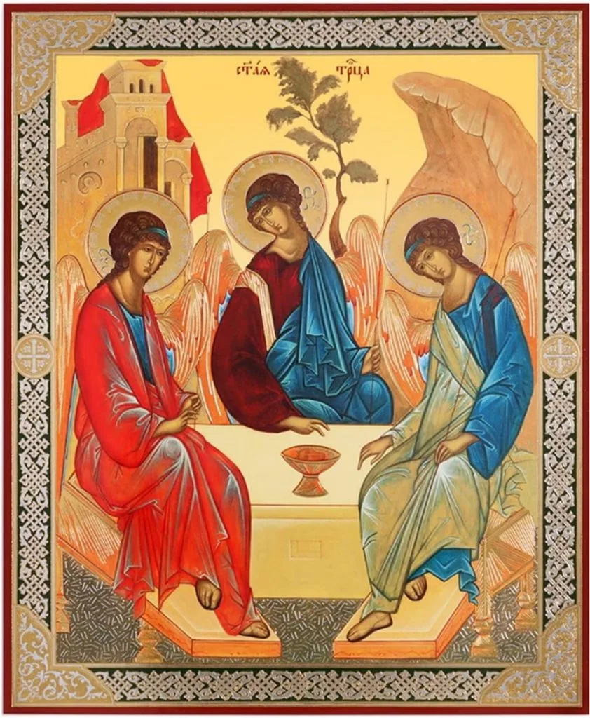 اين اثر هنري سه فرشته را حين ملاقات با ابراهيم نبي به تصوير ميکشد و يکي از تاثيرگذارترين نمايشهاي بصري تثليث است که پيش از آنکه توسط دولت شوروي از کليسا ارتدکس روسيه خارج شود در آنجا نگهداري ميشد.