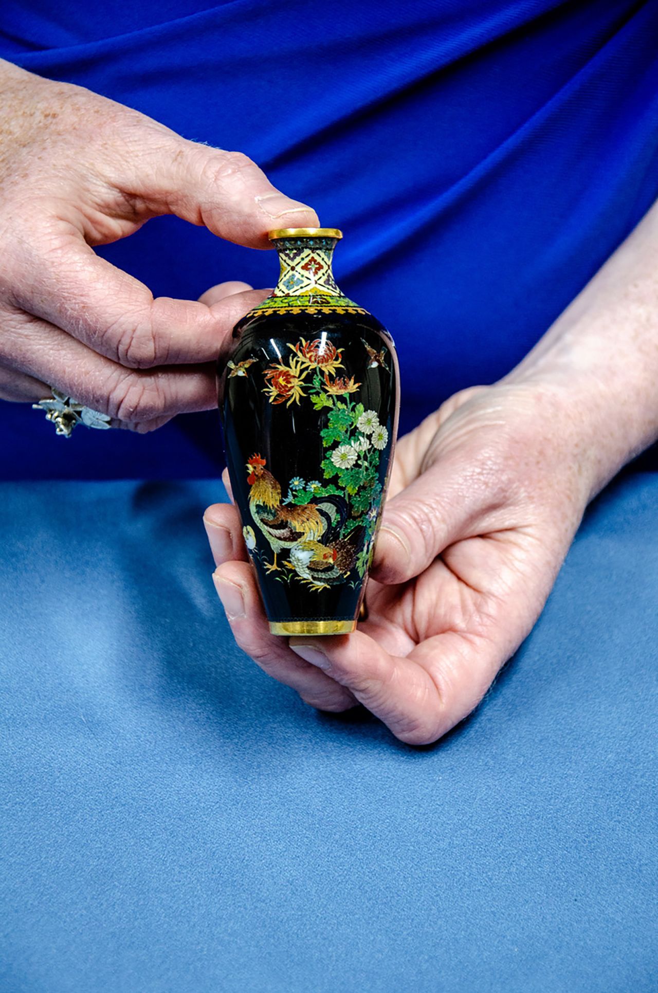 اين زوج مشغول خريد بودند که متوجه اين گلدان نقلي شدند و با بررسي حکاکي‌هاي زير گلدان نسبت به معمولي بودن آن ترديد کردند. آن‌ها براي بررسي اصالت اين گلدان با مسؤولان حراجي کنتربري «Canterbury» تماس گرفتند. کارشناسان حراجي تاييد کردند که اين گلدان در حقيقت يک صنايع دستي متعلق به قرن نوزدهم ميلادي است که توسط هنرمندي به نام «ناميکاوا ياسويوکي» (Namikawa Yasuyuki) ساخته شده است.