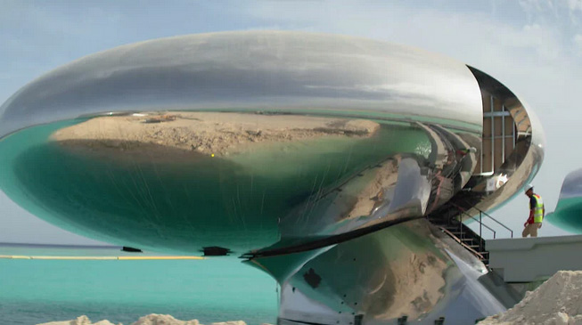 به گزارش گالري آنلاين، فيلمي که اخيرا توسط سازنده منتشر شده است، جزيره sheybarah را به نمايش مي گذارد، جايي که ويلاهاي روي آب و داخل آن در حال شکل گيري هستند. اين پروژه توسط Killa Design طراحي شده و به رهبري Shaun Killa، اين سازه ها به صورت گوي هاي شناور ظاهر مي شوند که افق را با سطوح آينه بازتابنده خود تکميل مي کنند. در همين حال، سازه هاي داخلي از تپه هاي شني مسحورکننده الهام مي گيرند.
