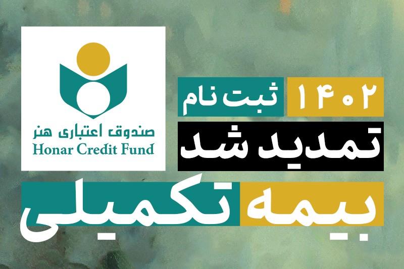 به گزارش گالري آنلاين به نقل از روابط عمومي صندوق اعتباري هنر، با توجه به تقاضاي زياد اعضايي که تاکنون موفق به ثبت نام و بهره مندي از خدمات بيمه درمان تکميلي نشده اند، مهلت نامنويسي بيمه درمان تکميلي ويژه هنرمندان، نويسندگان، روزنامهنگاران و فعالان قرآن و عترت عضو صندوق اعتباري هنر که از ۱۸ شهريور در سراسر کشور آغاز شده است، تا پايان روز شنبه اول مهر تمديد شد.