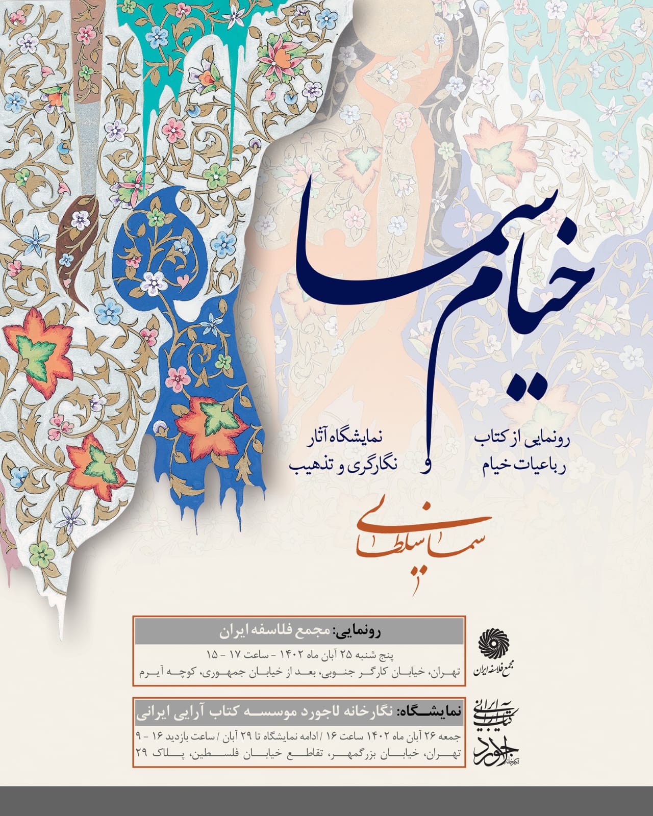 کتاب «خيام سما»، با نگارگريهاي سما سلطاني بر رباعيات خيام، عصر پنجشنبه در مجمع فلاسفه ايران با حضور نگارگر و جمعي از هنرمندان و فيلسوفان رونمايي شد.