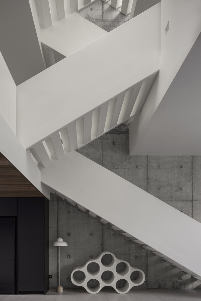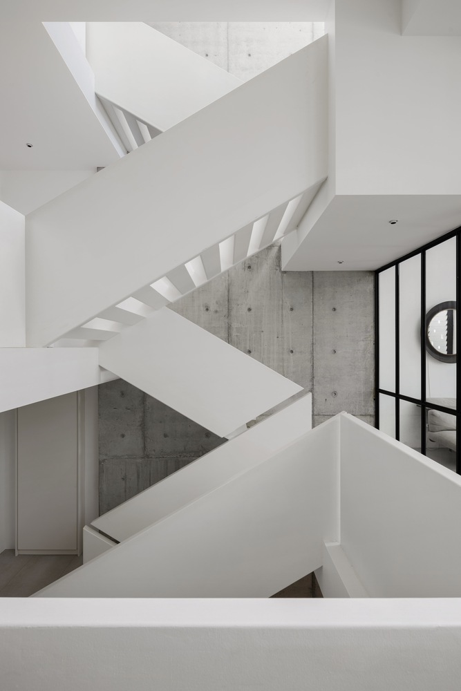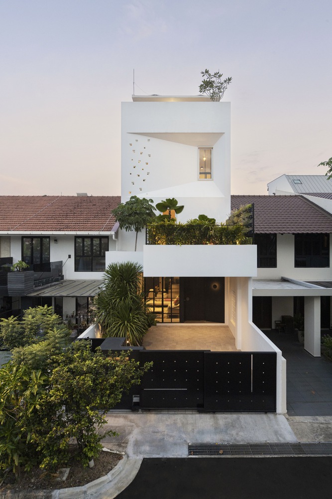 با الهام از هنر ژاپني Kirigami، نماي خانه شبيه کاغذ تا شده با يک چين زاويه دار است که يک پنجره بلند در سمت راست براي نور و تهويه و در عين حال حفظ حريم خصوصي دارد.