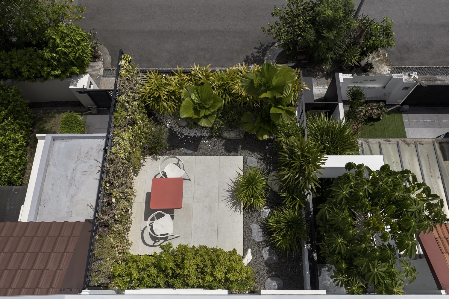در سطح سوم، يک باغ سرپوشيده، با يک اتاق خانوادگي با پانل هاي شيشه اي کامل در دو طرف، فضايي مشترک را ايجاد مي کند که با حضور زنده طبيعت آغشته شده است. اين ترکيب داخلي و خارجي باعث افزايش جريان هوا و نور طبيعي در سراسر خانه مي شود. يک راه پله به سبک کريگامي با فيلتر کردن نور طبيعي بين سطوح اين امر را افزايش مي دهد. بلوک هاي نسيم در اتاق خواب باعث افزايش جريان هوا در داخل خانه مي شود. طراحي هوشمندانه درب‌هاي برگردان پشت بلوک‌ها، انعطاف‌پذيري بين تهويه طبيعي و تهويه مطبوع را ارائه مي‌دهد. اين طراحي فضاهاي خصوصي و مشترک را متعادل مي کند و در عين حال نور طبيعي و تهويه را در اولويت قرار مي دهد.