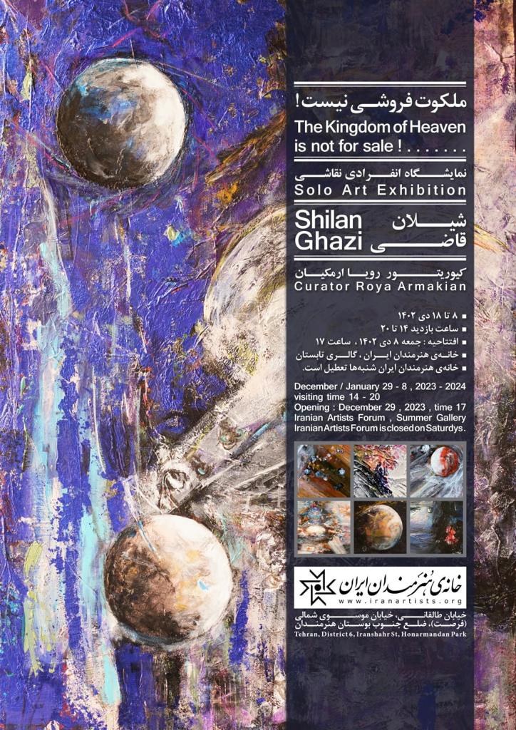 نمايشگاه انفرادي نقاشي شيلان قاضي تحت عنوان "ملکوت فروشي نيست!" به کيوريتوري رويا ارمکيان به نمايش درآمد.