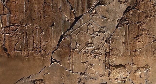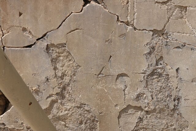قبله‌نما و کتيبه کنار آن روي جرز غربي درگاه شمال غربي کاخ آپادانا