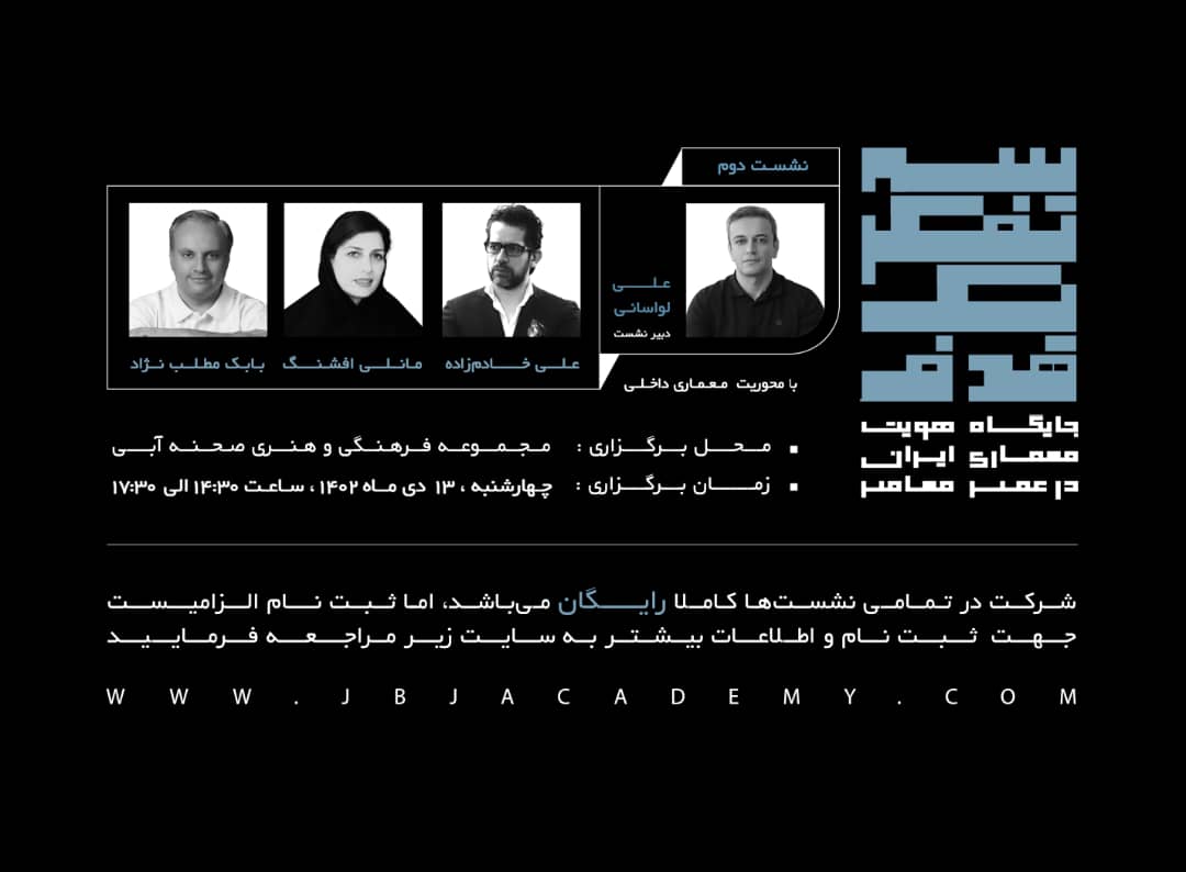 به گزارش گالري آنلاين به نقل از روابط عمومي آکادمي جوانان براي جوانان، سلسله نشستهاي «سه تفکر يک هدف» با عنوان «جايگاه هويت معماري ايران در عصر معاصر» به همت آکادمي معماري جوانان براي جوانان و موسسه فرهنگي هنري صحنه آبي برگزار ميشود.