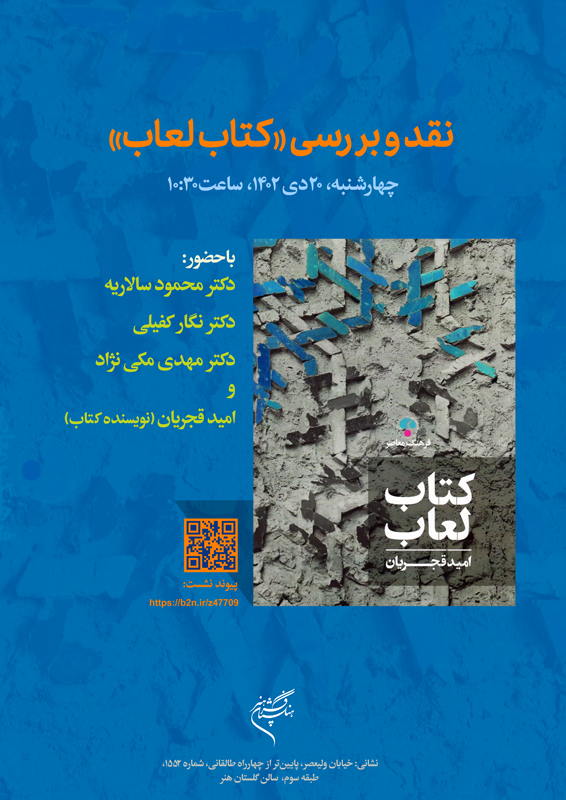نشست نقد و بررسي کتاب «کتاب لعاب» اثر اميد قجريان در فرهنگستان هنر برگزار ميشود.