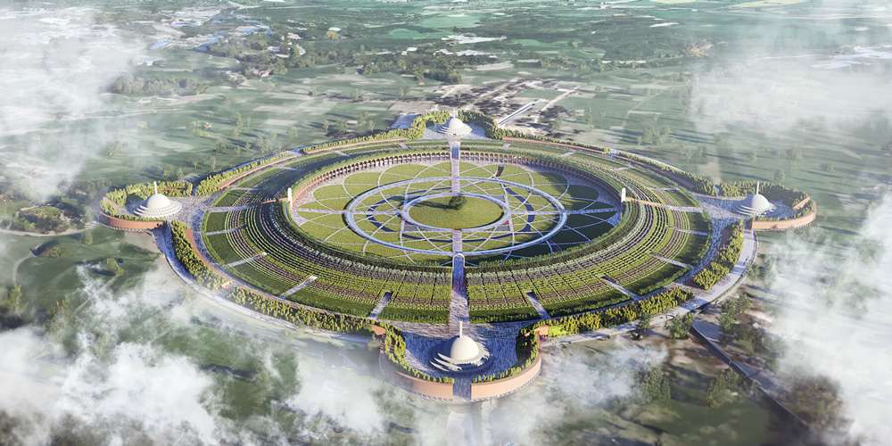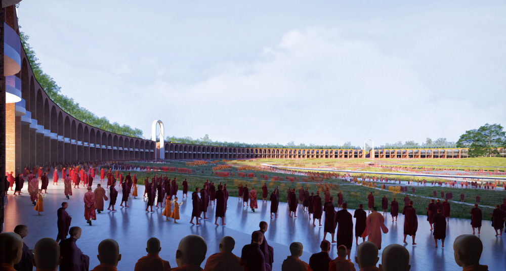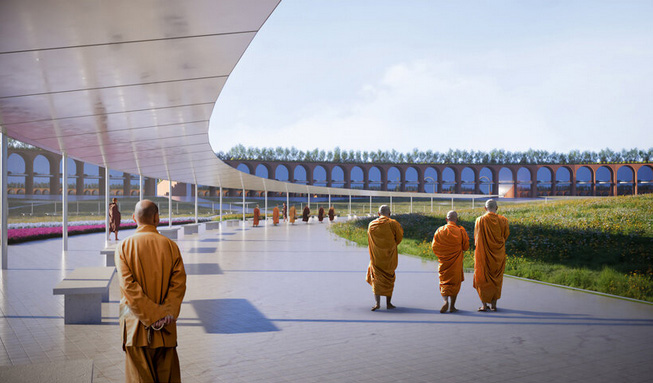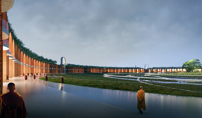 معماران با همکاري با ذينفعان محلي و پيروي از دستورالعمل هاي يونسکو براي حفاظت از ميراث، به دنبال ارتقاي برجستگي سايت و حصول اطمينان از حفظ پايدار آن هستند. پلان معماري به عنوان يک زيارتگاه آشکار مي شود و بازديدکنندگان را از طريق دنباله اي از فضاها راهنمايي مي کند که نمادگرايي استوپا را برجسته مي کند. اين شامل دروازههاي بزرگي است که جهتهاي اصلي را مشخص ميکنند و يک «چمنزار صلح» مرکزي که براي تفکر طراحي شده است. در اطراف اين منطقه فضاهاي فرهنگي و مناطق مراقبه وجود دارد که توسط باغ حلقه اي سرسبز تنوع زيستي احاطه شده است.