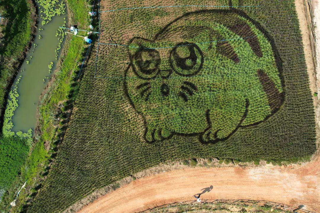 به گفته اين شاليکار براي به تصوير کشيدن گربه ها از مختصات GPS استفاده شده است تا بتوانند جوانه هاي برنج را همانطور که در طرح هنرمند مشخص شده است بکارند و علاوه بر آن همراه با رشد، جوانه ها نيز تغيير رنگ دهند.