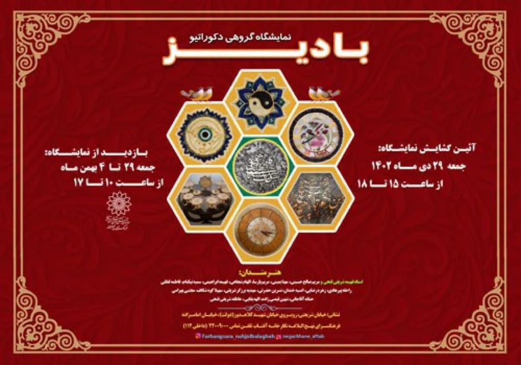 برپايي نمايشگاه گروهي دکوراتيو «باديز» جديدترين ويژه برنامه فرهنگسراي نهجالبلاغه است که در نگارخانه آفتاب برگزار ميشود.