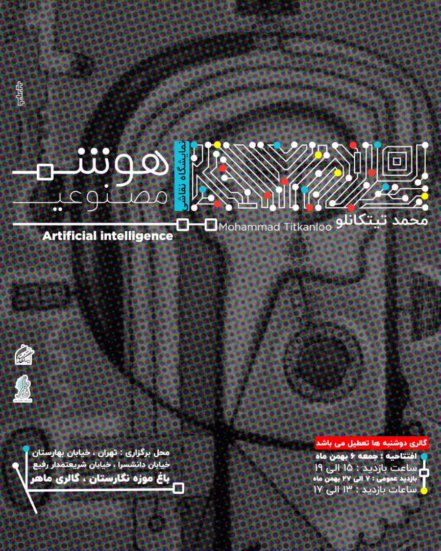 نمايشگاهي از نقاشي هاي "محمد تيتکانلو" تحت عنوان "هوش مصنوعي" از روز جمعه 6 بهمن ماه در گالري ماهر برپا شده است.